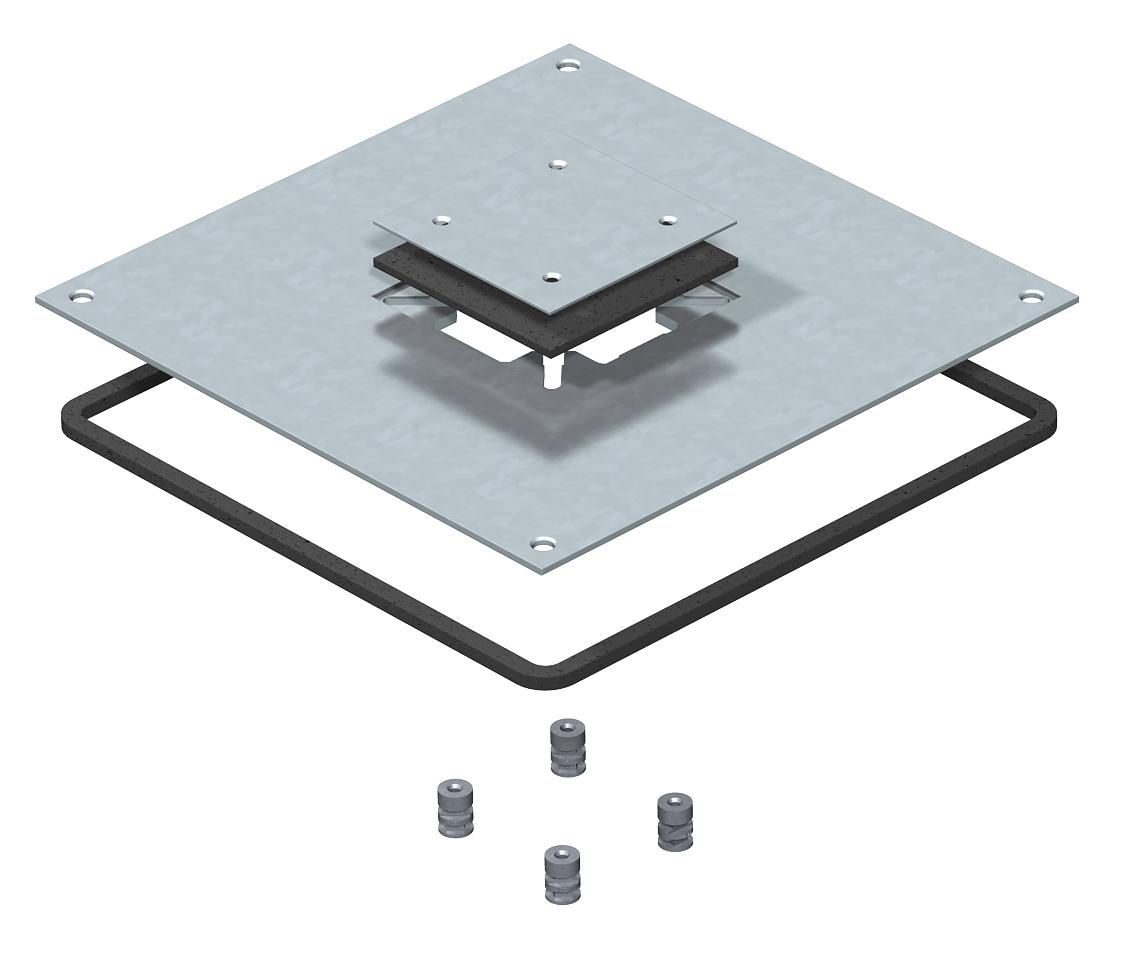 ProductbeschrijvingMontagedeksel voor vloertrek- en -aftakdozen van het type UZD250-3/4. (Inbouwopening 3 mm verzonken voor het eventueel naderhand blind afsluiten met dekselblindplaat.)