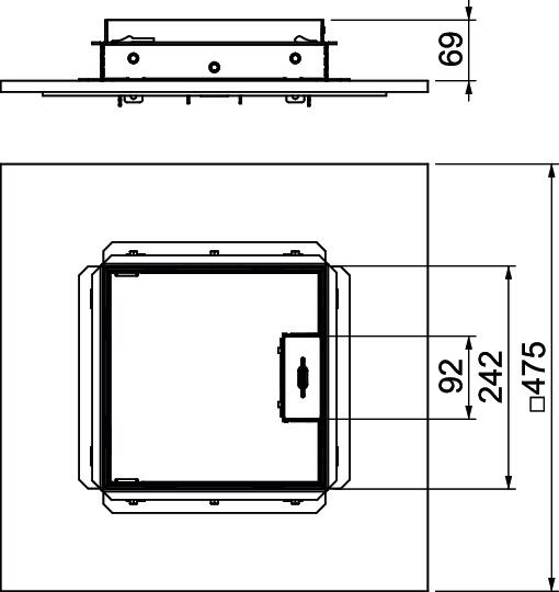 ProductbeschrijvingNivelleerbare en ontkoppelde vierkante cassette voor de apparatuurinbouw vlak met de vloer zonder voegen in vloeraansluitdozen UZD 350-3 (minimale inbouwdiepte 151 mm)/UGD55 350-3 (minimale inbouwdiepte 136 mm). Voor alle cementafwerkvloeren geschikt. Cassetteraam met geïntegreerde gietmal en nivelleerfunctie. Het cassetteraam wordt via 4 sleufgaten op de bovenkant van de vloerbekleding genivelleerd. Geschikt voor droog onderhouden vloeren. De cassette wordt met bevestigingsbeugels in het montagedeksel tijdens de werkzaamheden aan de afwerkvloer/terrazzo gefixeerd en is in ingebouwde toestand in alle richtingen ontkoppeld. Het cassetteraam is van roestvast staal met een 25 mm diepe vloerbekledingsuitsparing in het deksel.