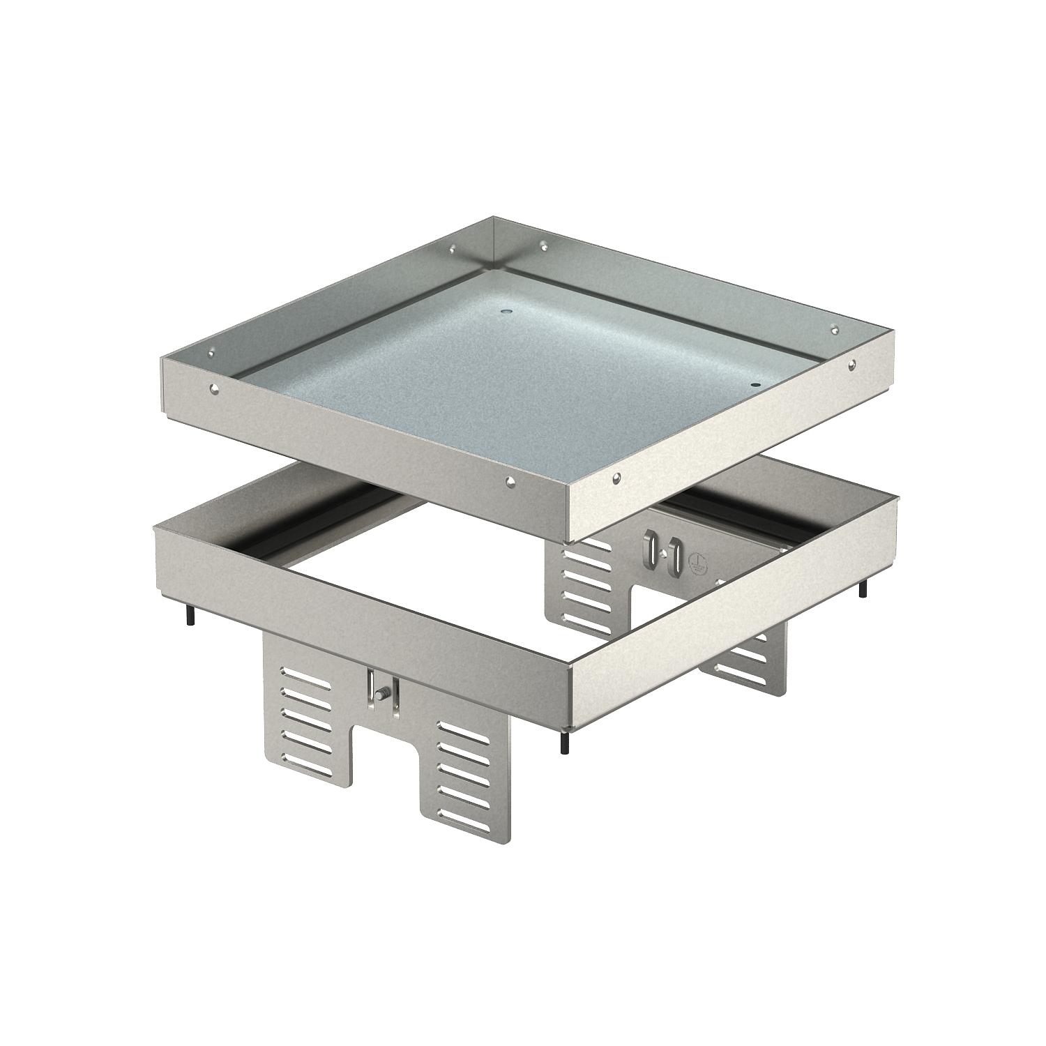 ProductbeschrijvingNivelleerbare en van de vloer ontkoppelde cassette "blind" voor het uitvoeren van een revisieopening nominale grootte 4 in droog of nat onderhouden binnenvloeren, voor montage in vloerdozen UZD250 of UZD350, telkens in combinatie met een montagedeksel DUG../4 of in UGD250-3/4 of UGD350-3/4. De montage wordt via nivelleerhoeken (afzonderlijk te bestellen) uitgevoerd in het aluminium frame van de vloerdozen. Alleen voor gladde vloerbekleding geschikt.