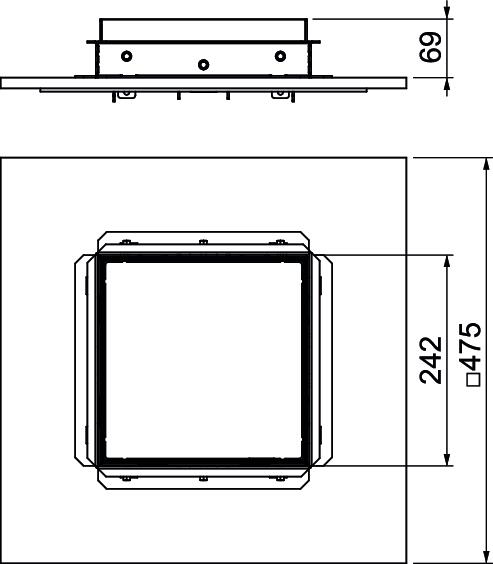 ProductbeschrijvingNivelleerbare en ontkoppelde vierkante cassette voor de apparatuurinbouw vlak met de vloer zonder voegen in vloeraansluitdozen UZD 350-3 (minimale inbouwdiepte 151 mm)/UGD55 350-3 (minimale inbouwdiepte 136 mm). Voor alle cementafwerkvloeren geschikt. Cassetteraam met geïntegreerde gietmal en nivelleerfunctie. Het cassetteraam wordt via 4 sleufgaten op de bovenkant van de vloerbekleding genivelleerd. Voor droog, vochtig of nat onderhouden vloeren geschikt. De cassette wordt met bevestigingsbeugels in het montagedeksel tijdens de werkzaamheden aan de afwerkvloer/terrazzo gefixeerd en is in ingebouwde toestand in alle richtingen ontkoppeld. Het cassetteraam is van roestvast staal met een 25 mm diepe vloerbekledingsuitsparing in het deksel. Alleen voor gladde vloerbekleding geschikt.