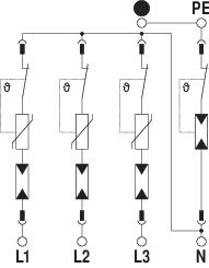• Afleidvermogen tot 30 kA (8/20) per pool dankzij hoogvermogen varistoren Serieschakeling van varistor en vonkbaan