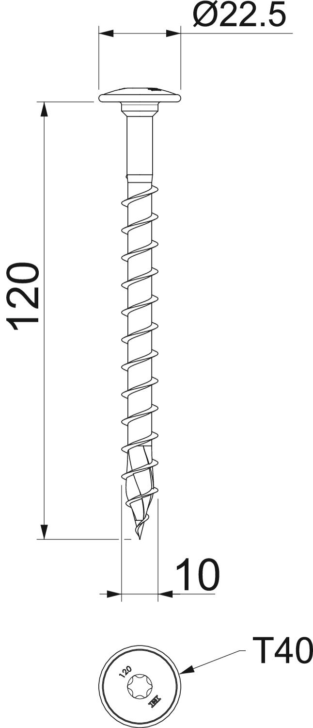 Dimensie 10x120 Dubbele schroefdraad nee Gehard ja Kleur zink Kopdiameter 22,5 mm Kopvorm Schotelkop Lengte 120 mm Maat D 10 mm Maat L 120 mm Materiaal Staal Oppervlak galvanisch verzinkt Schachtdiameter 7 mm Schroefsysteem Torx - Alle typen