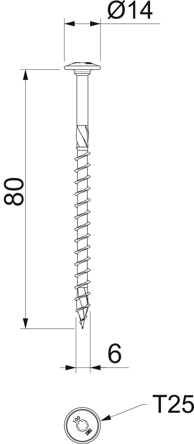 Dimensie 6x80 Dubbele schroefdraad nee Gehard ja Kleur zink Kopdiameter 14 mm Kopvorm Schotelkop Lengte 80 mm Maat D 6 mm Maat L 80 mm Materiaal Staal Oppervlak galvanisch verzinkt Schachtdiameter 4,5 mm Schroefsysteem Torx - Alle typen
