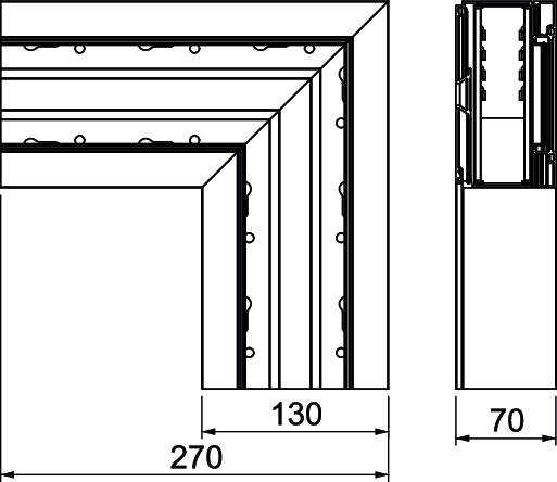 ProductbeschrijvingPlatte hoek dalend als hulpstuk voor richtingsverandering voor het Signa Style installatiekanaal.