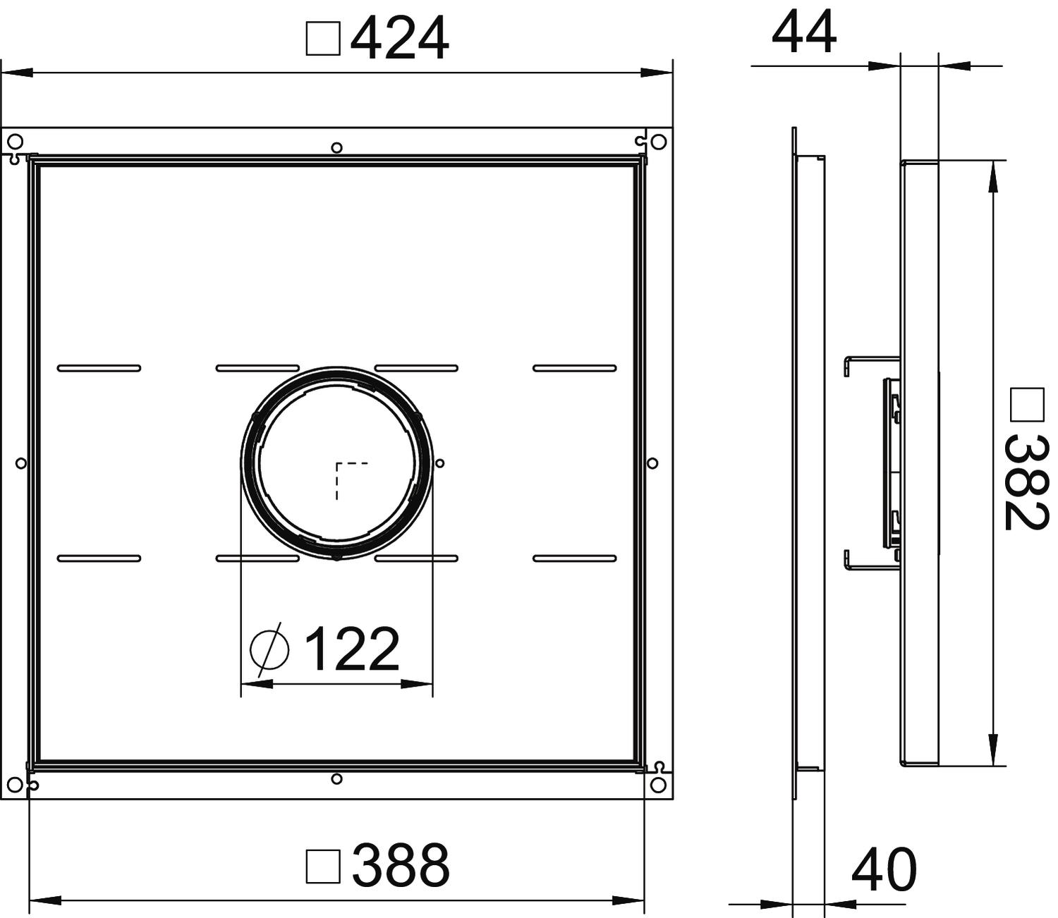 ProductbeschrijvingFramecassette voor zware belastingen, voor tubus, voor de inbouw in de UZD350-3 in droog of nat onderhouden vloeren in binnenopstelling. Belastingsklasse 2 tot 20 kN. De tubus is niet bij de levering inbegrepen.