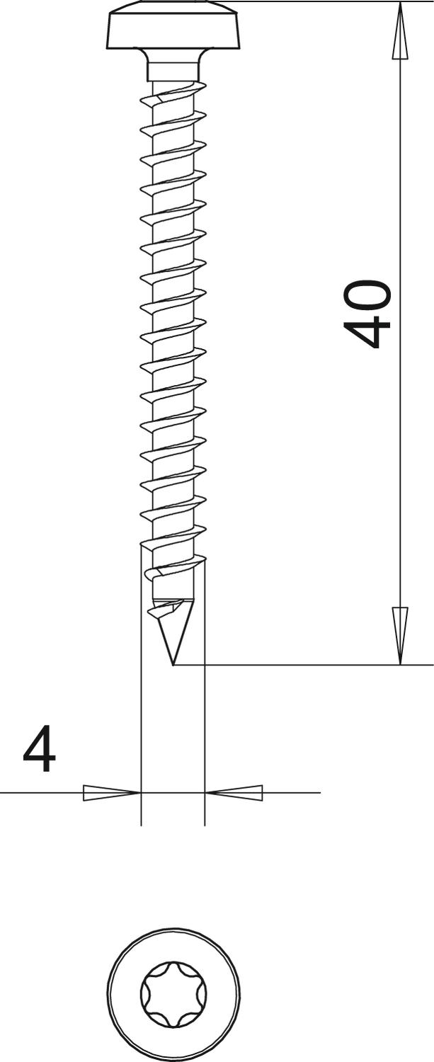 Dimensie 4x40mm Dubbele schroefdraad ja Gehard ja Kopdiameter 7,5 mm Kopvorm Panhead Lengte 40 mm Maat D 4 mm Maat L 40 mm Materiaal Staal Oppervlak galvanisch verzinkt Schroefsysteem Torx Stijfsel 4 mm - Alle typen