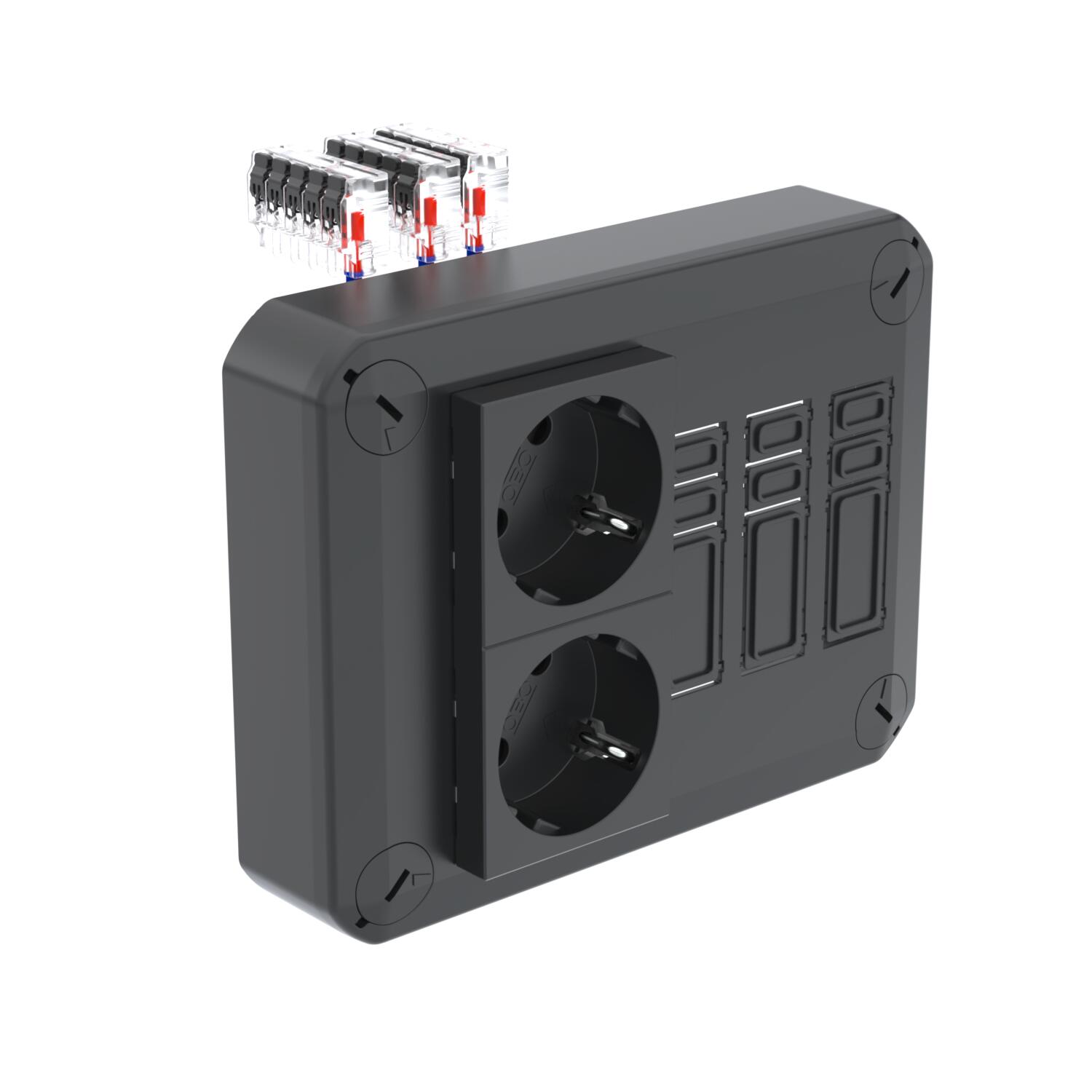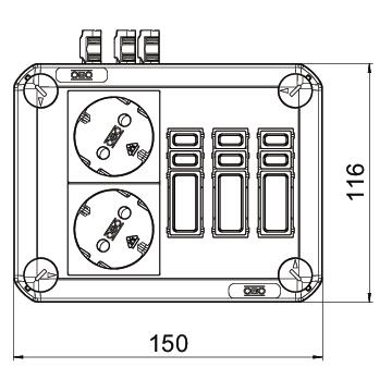 Beschermingsgraad IP 30 Breedte 116 mm Dimensie 150x116x60 Hoogte 60 mm Kleur grafietzwart, RAL 9011 Lengte 150 mm Materiaal Polypropyleen Type bevestiging Schroefbevestiging Uitvoering deksel inbouw en holle wand Deksel met contactdoos Vorm Rechthoekig - Alle typen