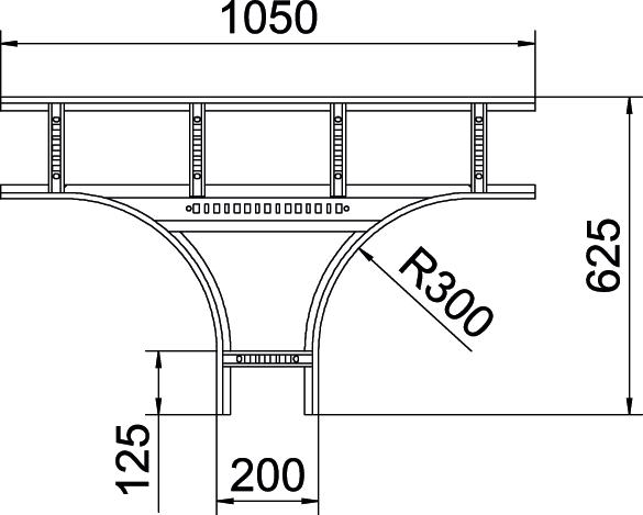 ProductbeschrijvingT-stuk, horizontaal met gelaste sporten, voor alle types kabelladder met een zijhoogte van 110 mm.