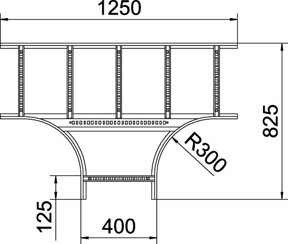 ProductbeschrijvingT-stuk, horizontaal met gelaste sporten, voor alle types kabelladder met een zijhoogte van 110 mm.