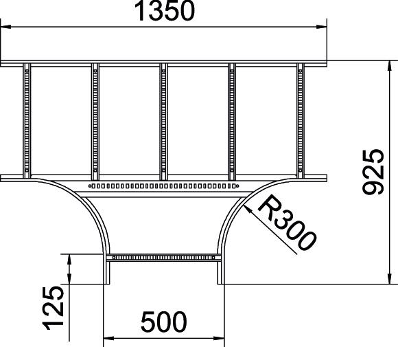 ProductbeschrijvingT-stuk, horizontaal met gelaste sporten, voor alle types kabelladder met een zijhoogte van 110 mm.
