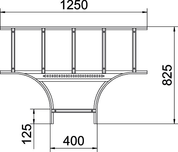 ProductbeschrijvingT-stuk, horizontaal met gelaste sporten, voor alle types kabelladder met een zijhoogte van 110 mm.