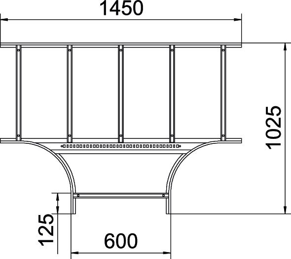 ProductbeschrijvingT-stuk, horizontaal met gelaste sporten, voor alle types kabelladder met een zijhoogte van 110 mm.
