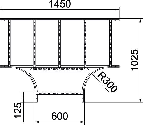 ProductbeschrijvingT-stuk, horizontaal met gelaste sporten, voor alle types kabelladder met een zijhoogte van 60 mm.
