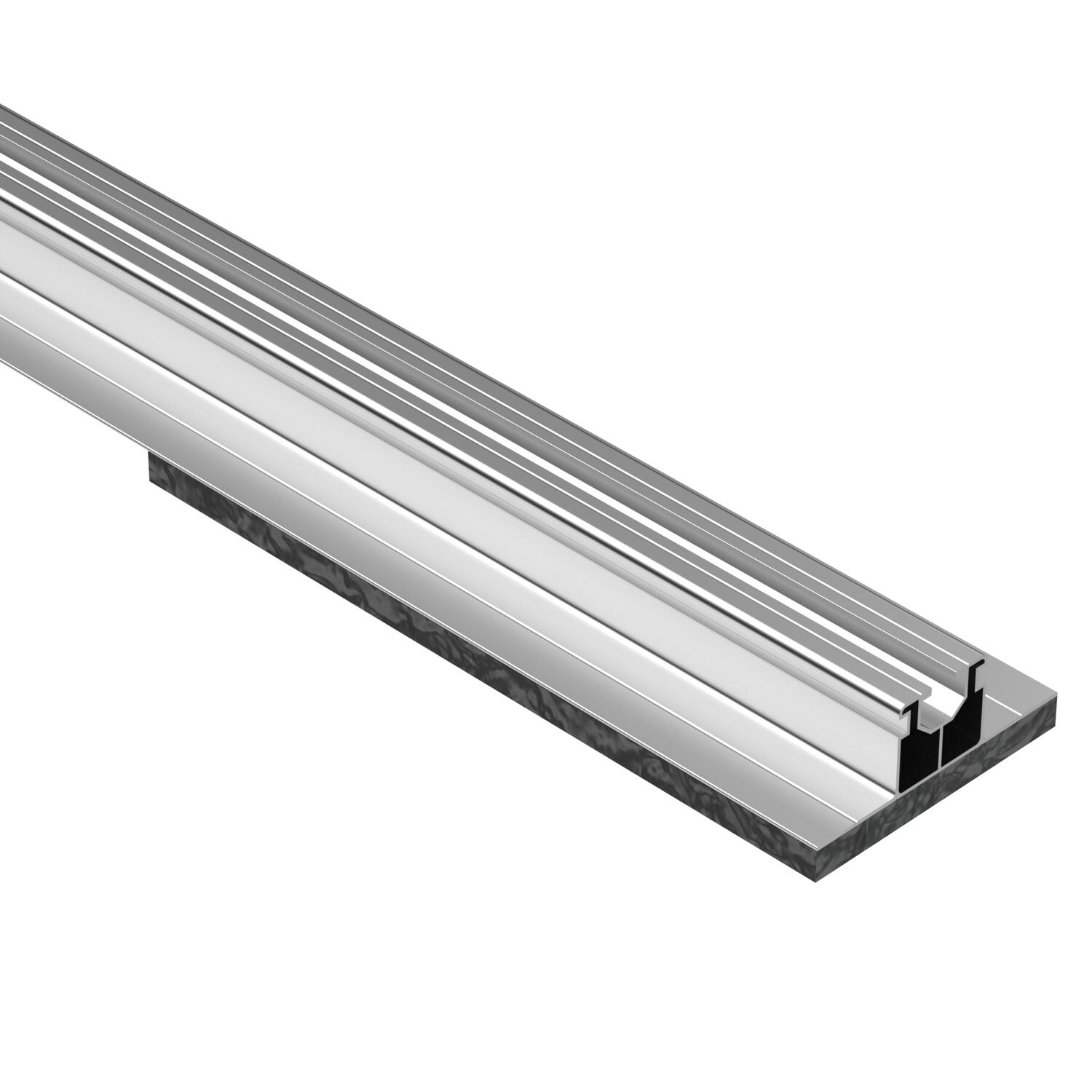 ProductbeschrijvingRutschfestes, Alu-kaschiertes Trägerprofil zum Montieren von Photovoltaik-Modulen auf Flachdächern. Basis zur Aufnahme von kurzen und langen Stützen STK AD, STLS AD sowie STLWO AD. Schraubbare Längsverbindung mehrerer Trägerprofile mit Längsverbinder LV 35.