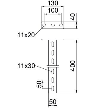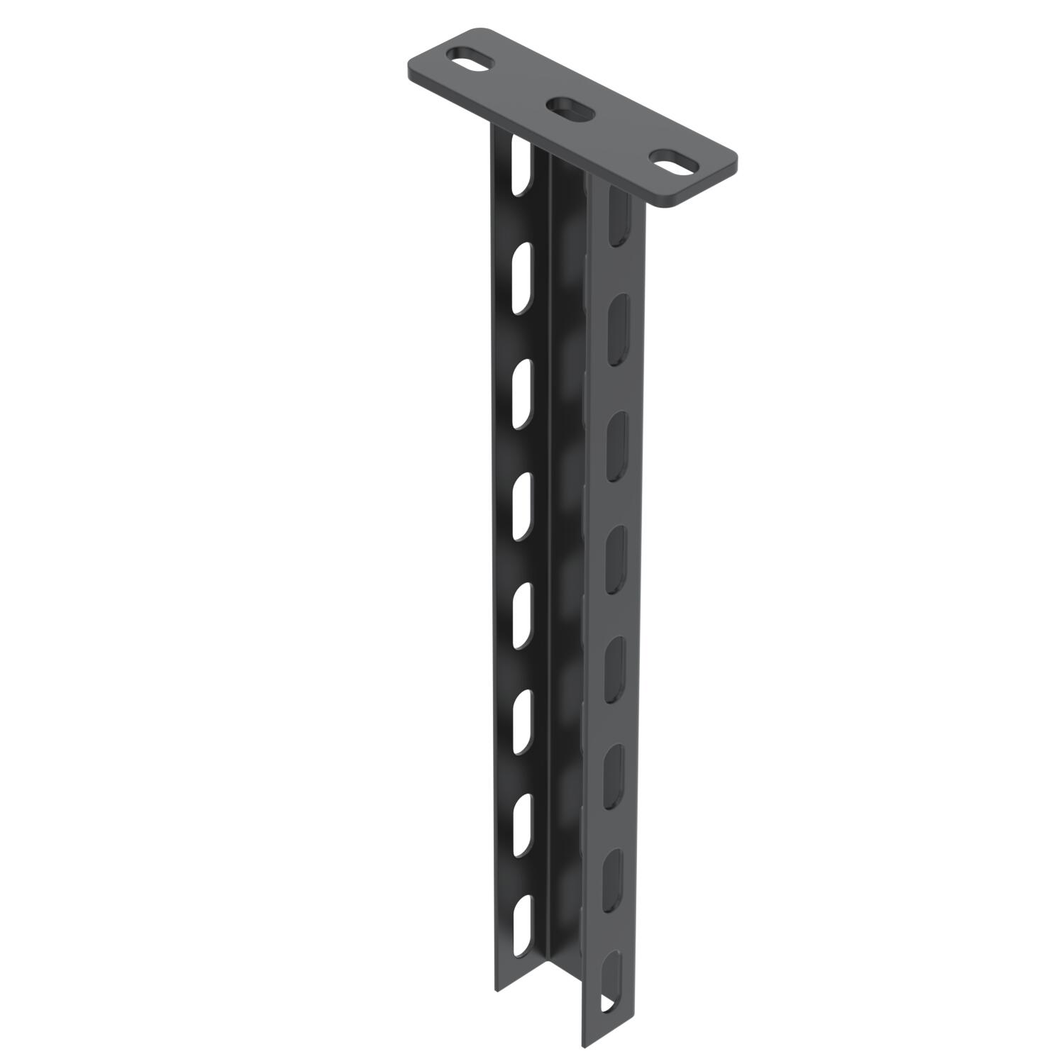 ProductbeschrijvingHangprofiel (U-profiel) in de afmeting 50 x 30 mm met aangelaste kopplaat. Voor de bevestiging aan horizontale betonnen plafonds en stalen dragers. Poedergecoat in diepzwart (RAL 9005). Vanaf de consolebreedte 400mm of bij de montage van de console op het uiteinde van het hangprofiel wordt geadviseerd het afstandsstuk type DSK 25 te gebruiken.