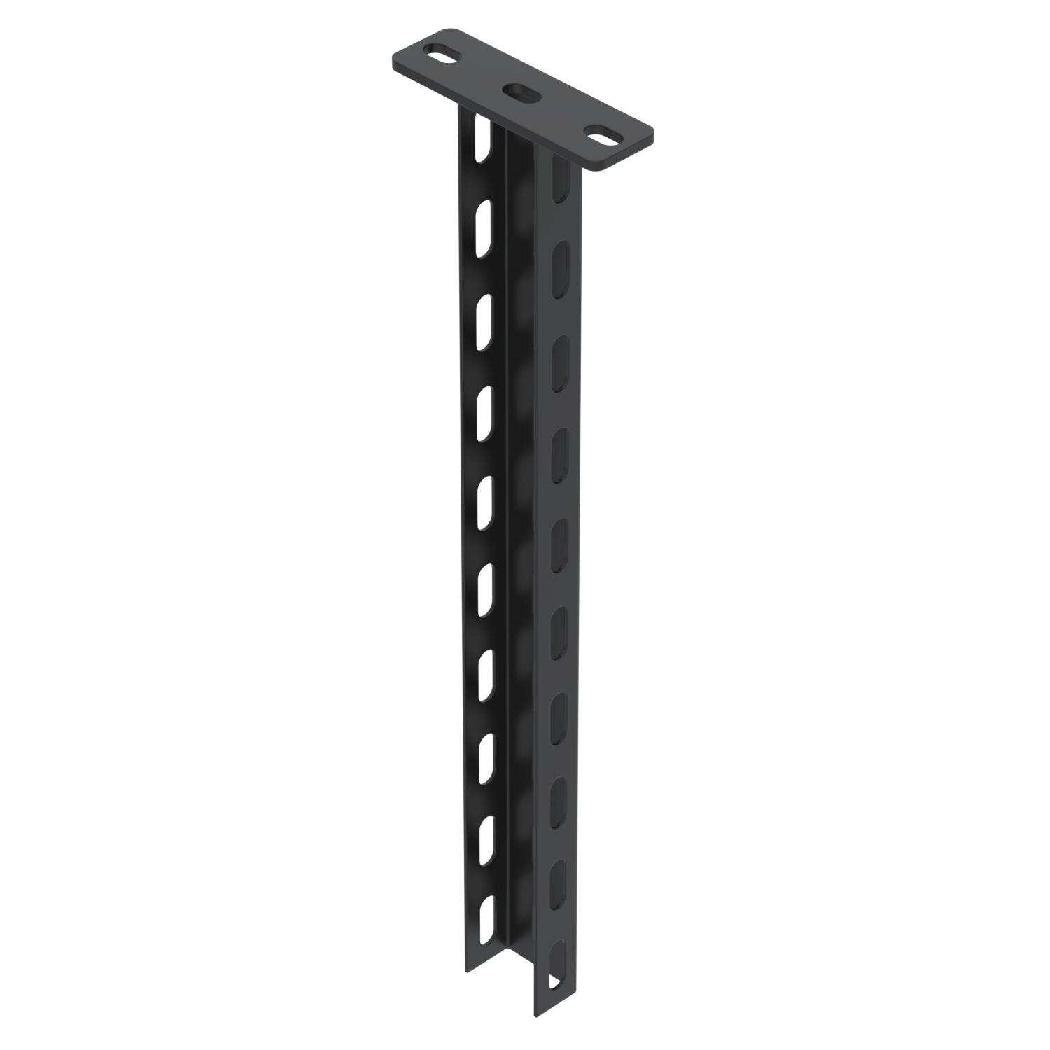 ProductbeschrijvingHangprofiel (U-profiel) in de afmeting 50 x 30 mm met aangelaste kopplaat. Voor de bevestiging aan horizontale betonnen plafonds en stalen dragers. Poedergecoat in diepzwart (RAL 9005). Vanaf de consolebreedte 400mm of bij de montage van de console op het uiteinde van het hangprofiel wordt geadviseerd het afstandsstuk type DSK 25 te gebruiken.
