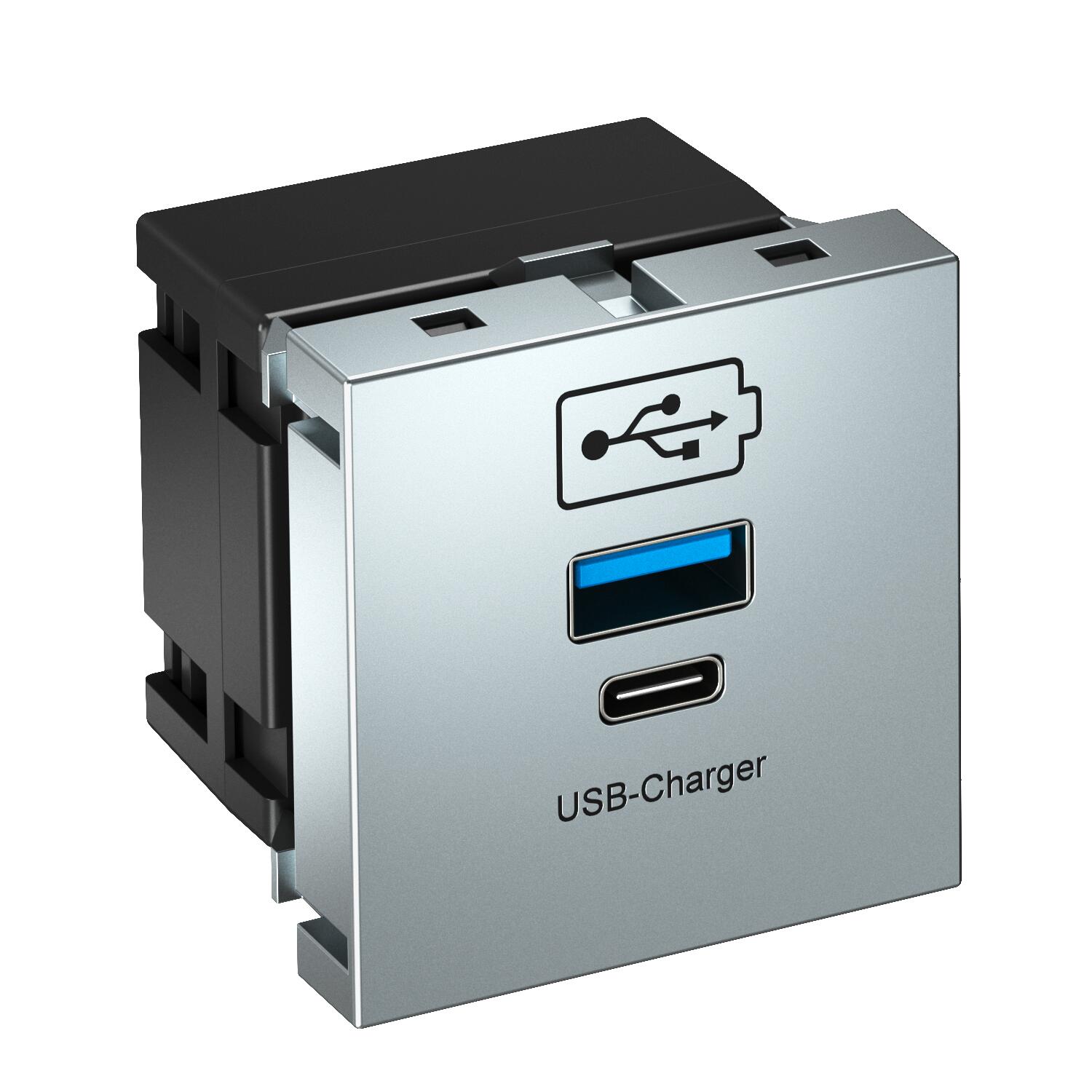 ProductbeschrijvingUSB charging device with USB Type-A and Type-C sockets for one to two mobile devices (e.g. mobile telephones or tablets). Suitable for installation in Rapid 45 device installation ducts, Rapid 80 device installation ducts, service poles and underfloor systems for indoor application.