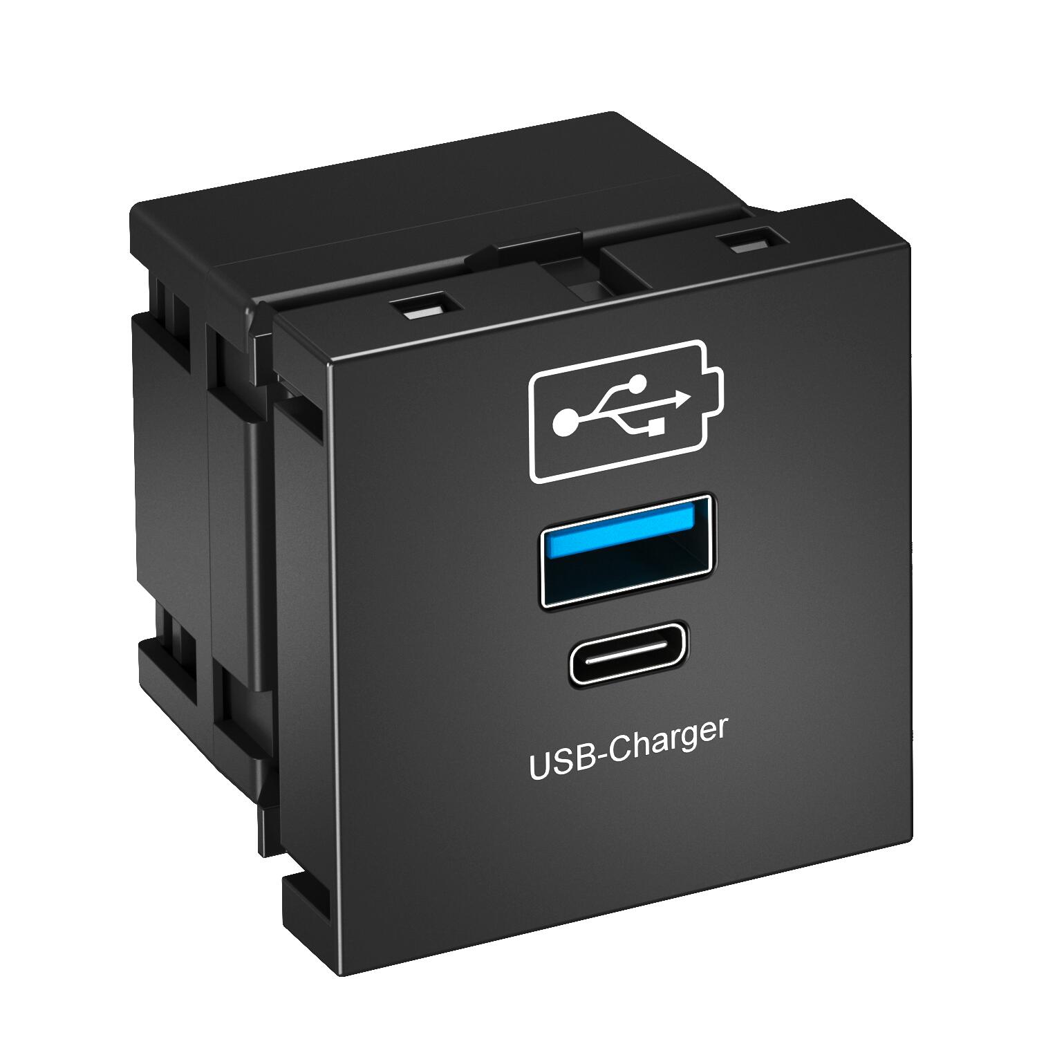 ProductbeschrijvingUSB charging device with USB Type-A and Type-C sockets for one to two mobile devices (e.g. mobile telephones or tablets). Suitable for installation in Rapid 45 device installation ducts, Rapid 80 device installation ducts, service poles and underfloor systems for indoor application.