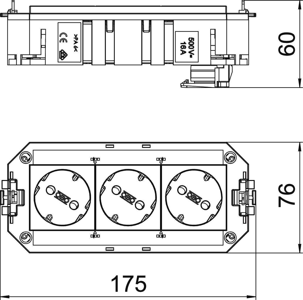 ProductbeschrijvingDe aansluitgerede universele drager UTC3 beschikt over drie voorgeïnstalleerde 33 -veiligheidscontactdozen met 16 A. Passend bij de verbindingskabels VL en de inbouweenheden met nominale grootte 2, 4, R4, 6 en R7.