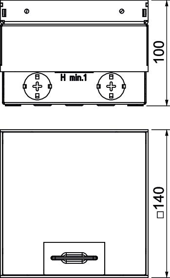 ProductbeschrijvingVierkante vloerdoos voor toepassing in droog onderhouden vloeren en voor inbouw in dekvloeren. Inbouwbehuizing met voorgeponste invoeropeningen voor buizen (M20/M25). Bovenste deel dankzij 4 nivelleersteunen aanpasbaar aan de bovenkant van de vloerbekleding. De minimum installatiehoogte is 100 mm, met een nivelleringsbereik van + 35 mmZichtbare delen in messing in de vloerbekleding Deksel met decorplaat Hammer blow. Lege behuizing voor max. 2 modules 45®-inbouwapparaten in de montagedrager en 2 data-outlets in de optionele datatechniekdrager. De belastbaarheid van 15 kN is alleen in niet gebruikte toestand gewaarborgd.