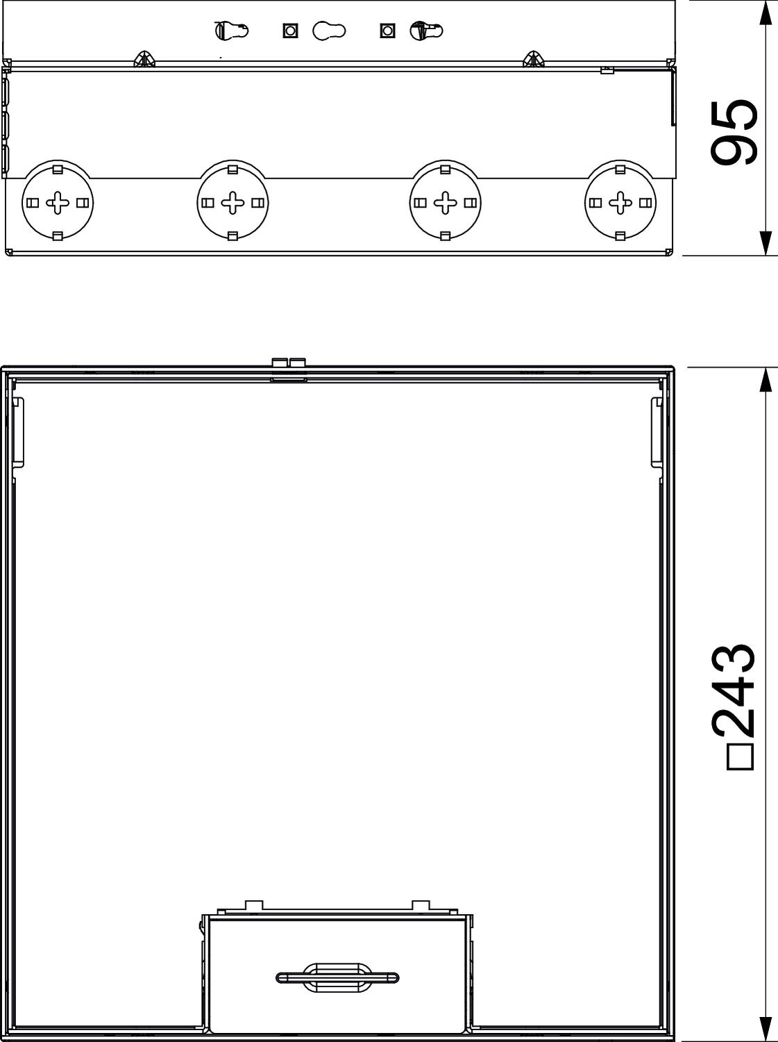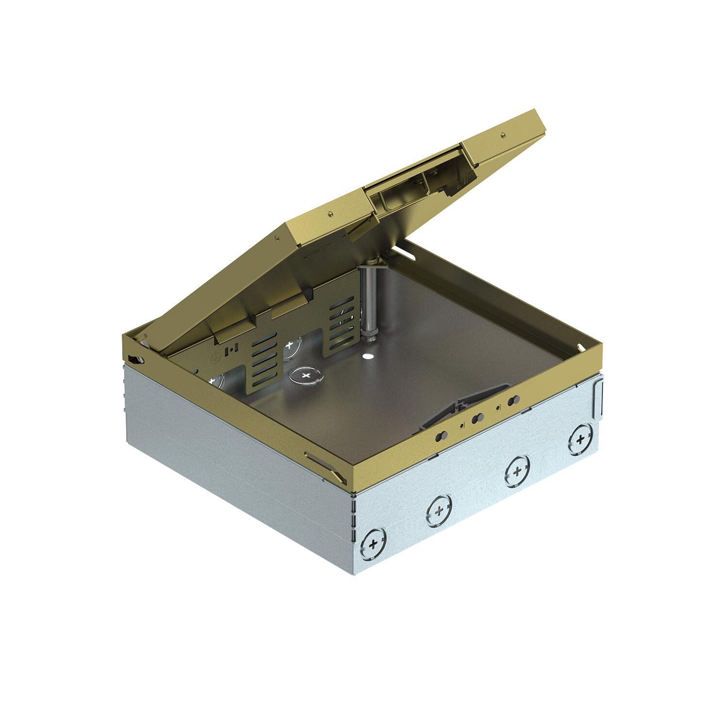 ProductbeschrijvingVierkante vloerdoos voor toepassing in droog onderhouden holle vloeren en voor inbouw in afwerkvloeren binnen. Inbouwbehuizing met voorgestanste invoeropeningen voor buizen (M25). Lege behuizing voor max. 3 universele dragers UT4 voor tot max. 12 modules 45 ® -inbouwapparaten. Bovenste deel dankzij 4 nivelleersteunen aanpasbaar aan de bovenkant van de vloerbekleding. De minimum installatiehoogte is 95 mm, het nivelleringsbereik + 30 mm.