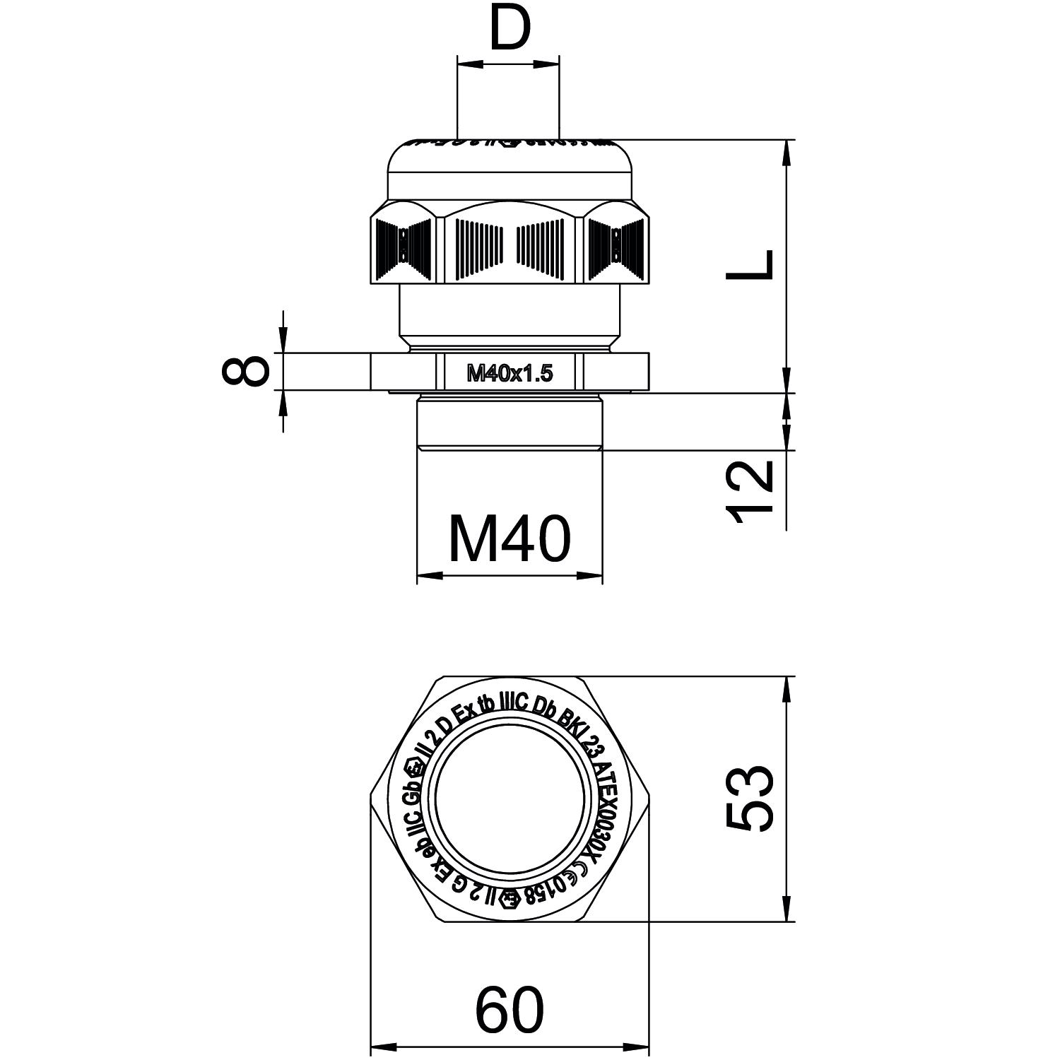 ProductbeschrijvingWartel met EG-keuringscertificaat voor apparaten en beveiligingssystemen voor gebruik conform de voorschriften in explosieve omgevingen. Richtlijn 2014/34/EU.